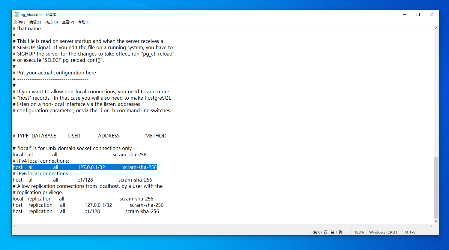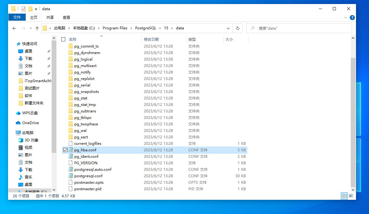 1.打開以下路徑,默認(rèn)為C:\Program Files\PostgreSQL\15\pgAdmin 4\bin,并選擇以文檔方式打開pg_hba.conf