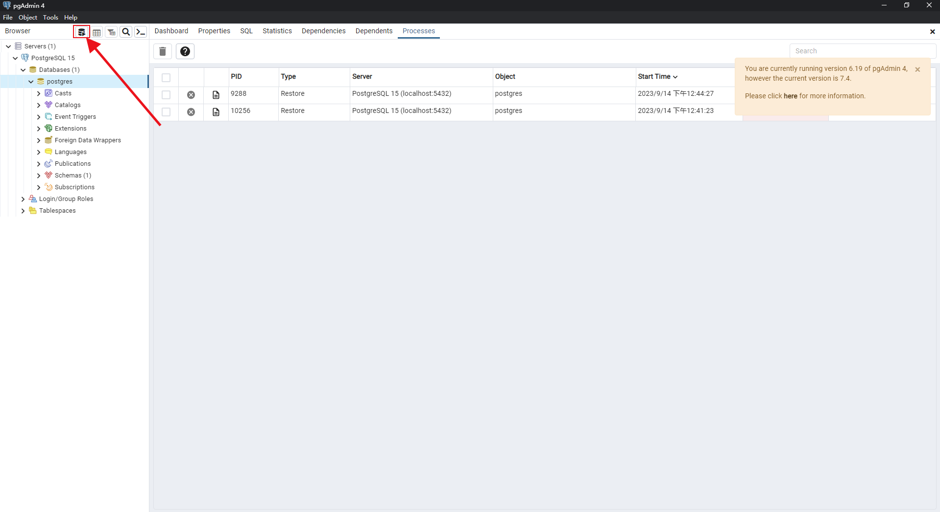 3.點(diǎn)擊展開Databases,左鍵單擊postgres