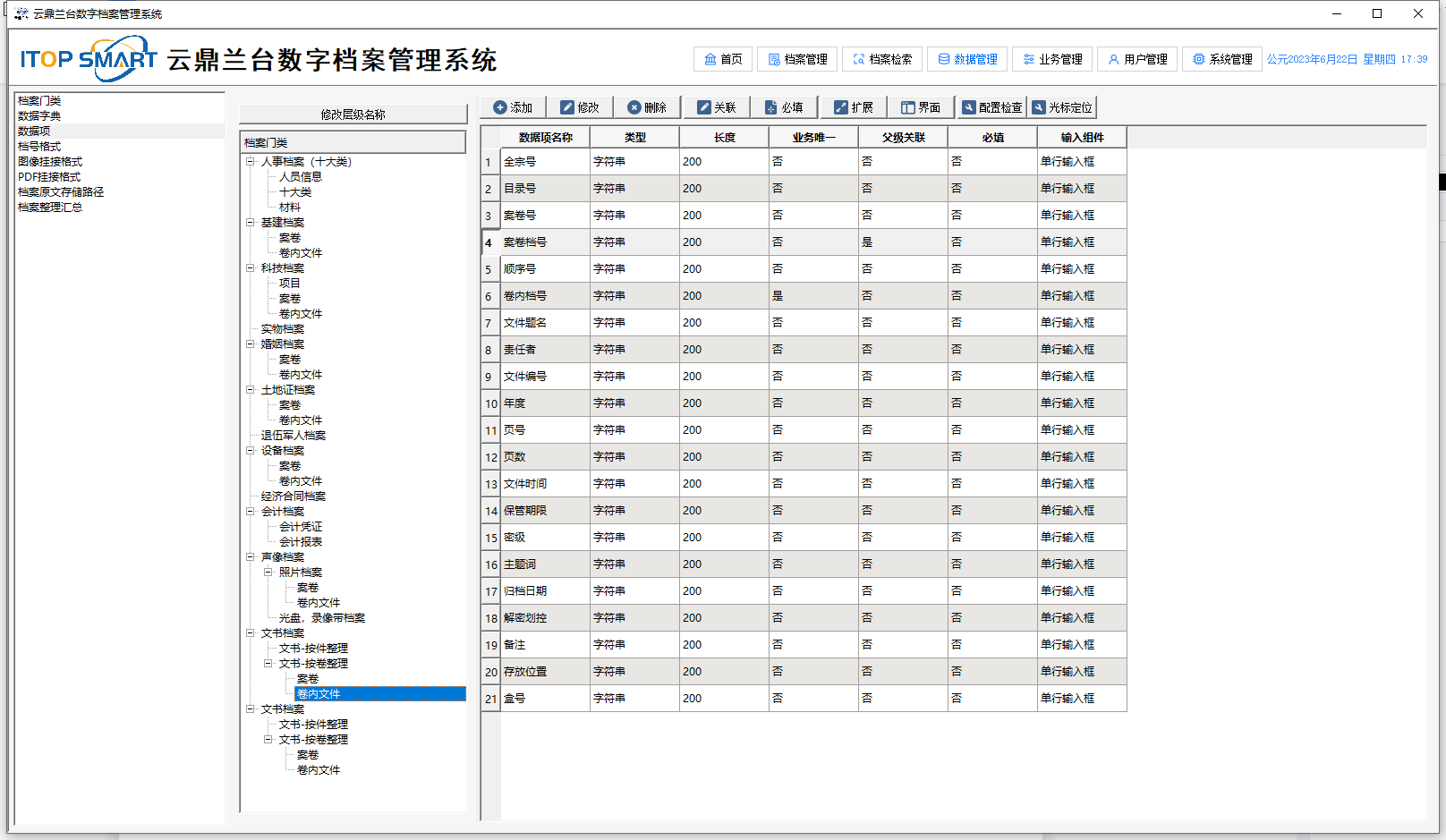 (1)文書檔案案卷級檔案數(shù)據(jù)項配置