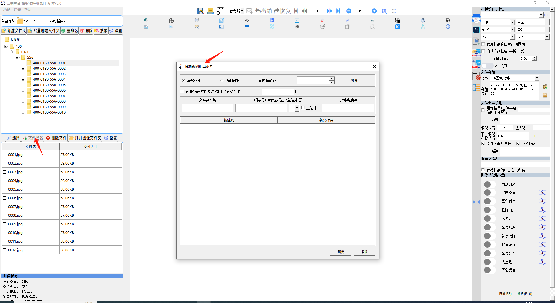 按新規(guī)則批量更名:既可以確定新名稱的位數(shù),初始號,是否空位補(bǔ)零,又可以確定更名文件的個數(shù),以及是否增加檔號前綴。