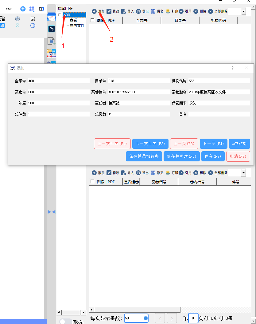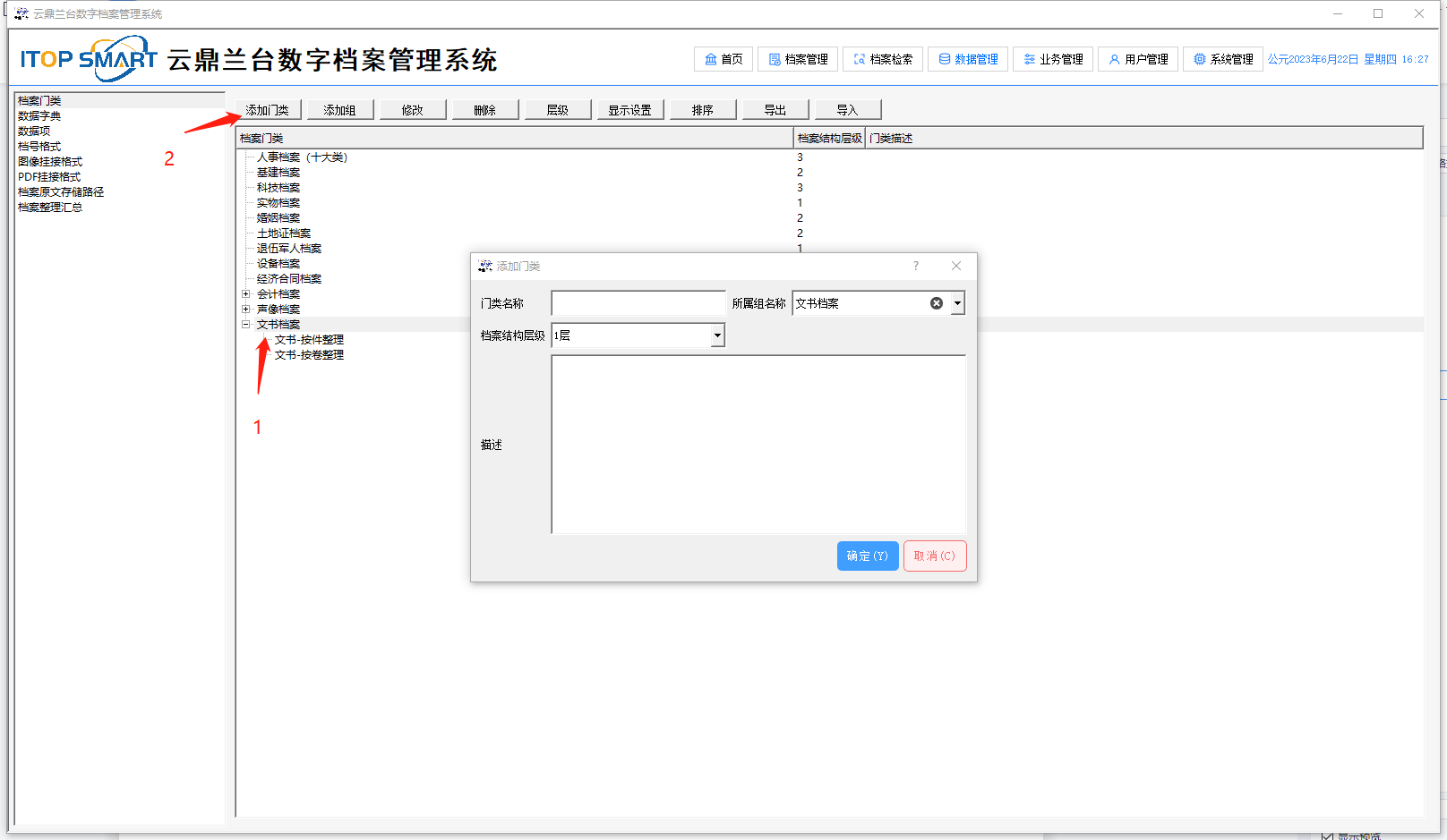 (1),點擊選擇門類,點擊添加可以為此門類添加案卷