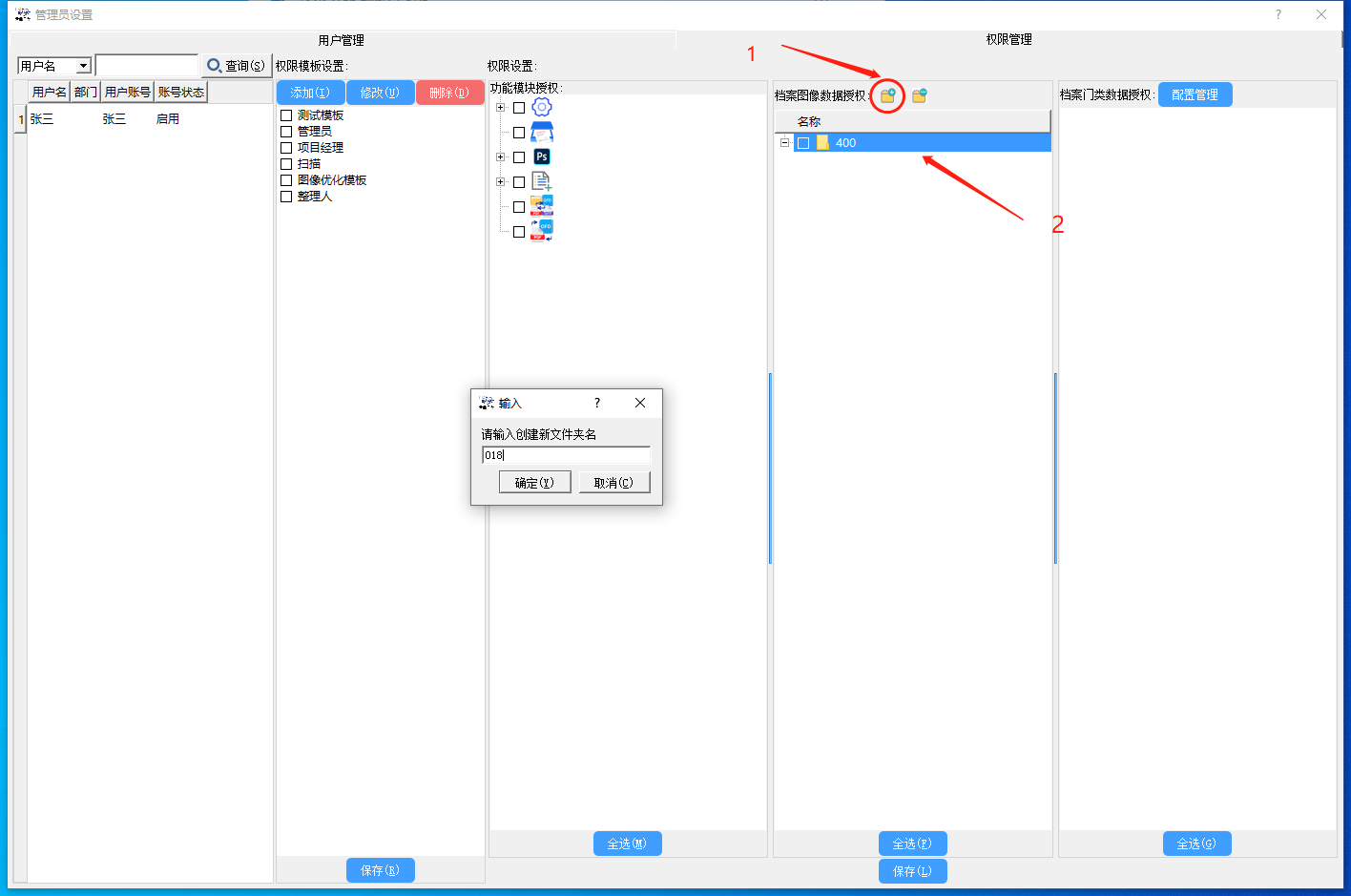 (2),點擊檔案圖像數(shù)據(jù)授權(quán)后的第一個文件夾圖片,可以于共享文件夾內(nèi)創(chuàng)建單個文件夾,選擇已創(chuàng)建完畢的文件夾,再次點擊此圖標(biāo)創(chuàng)建文件夾,將為此文件夾創(chuàng)建一個次級文件夾。