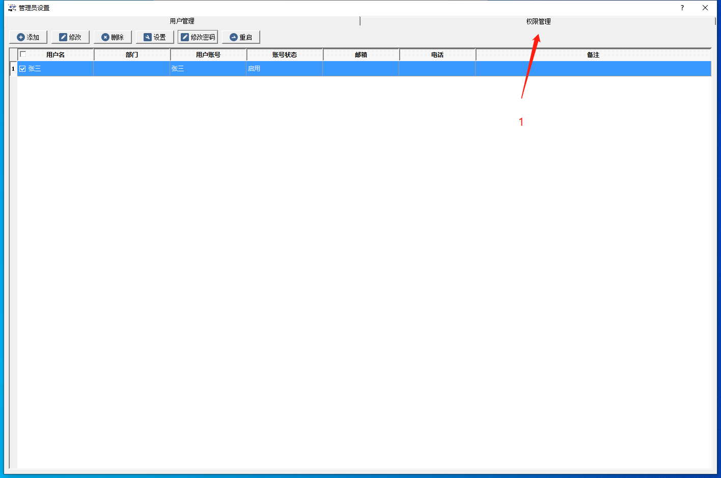 (1),在管理員設(shè)置界面,點擊權(quán)限管理,