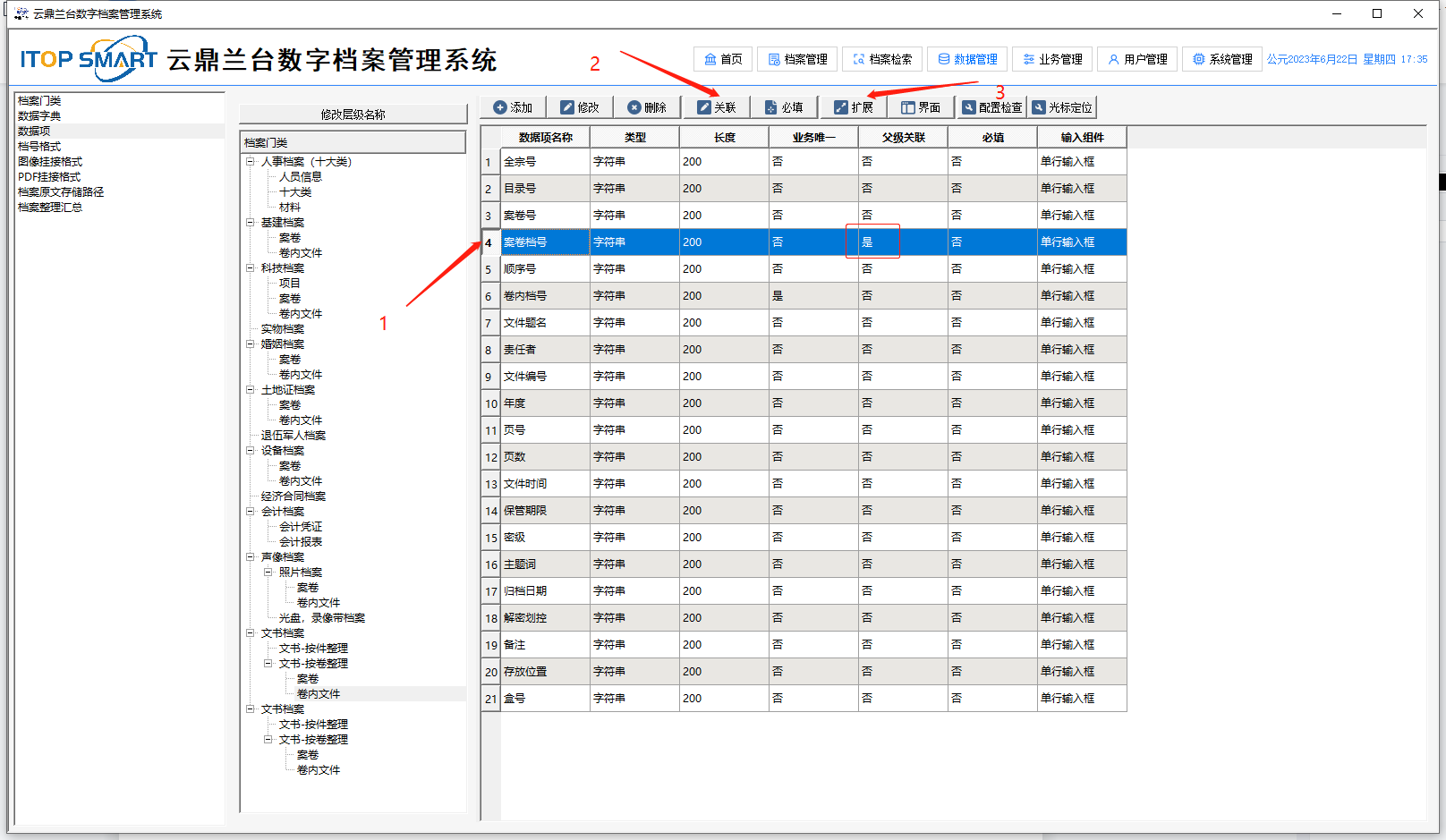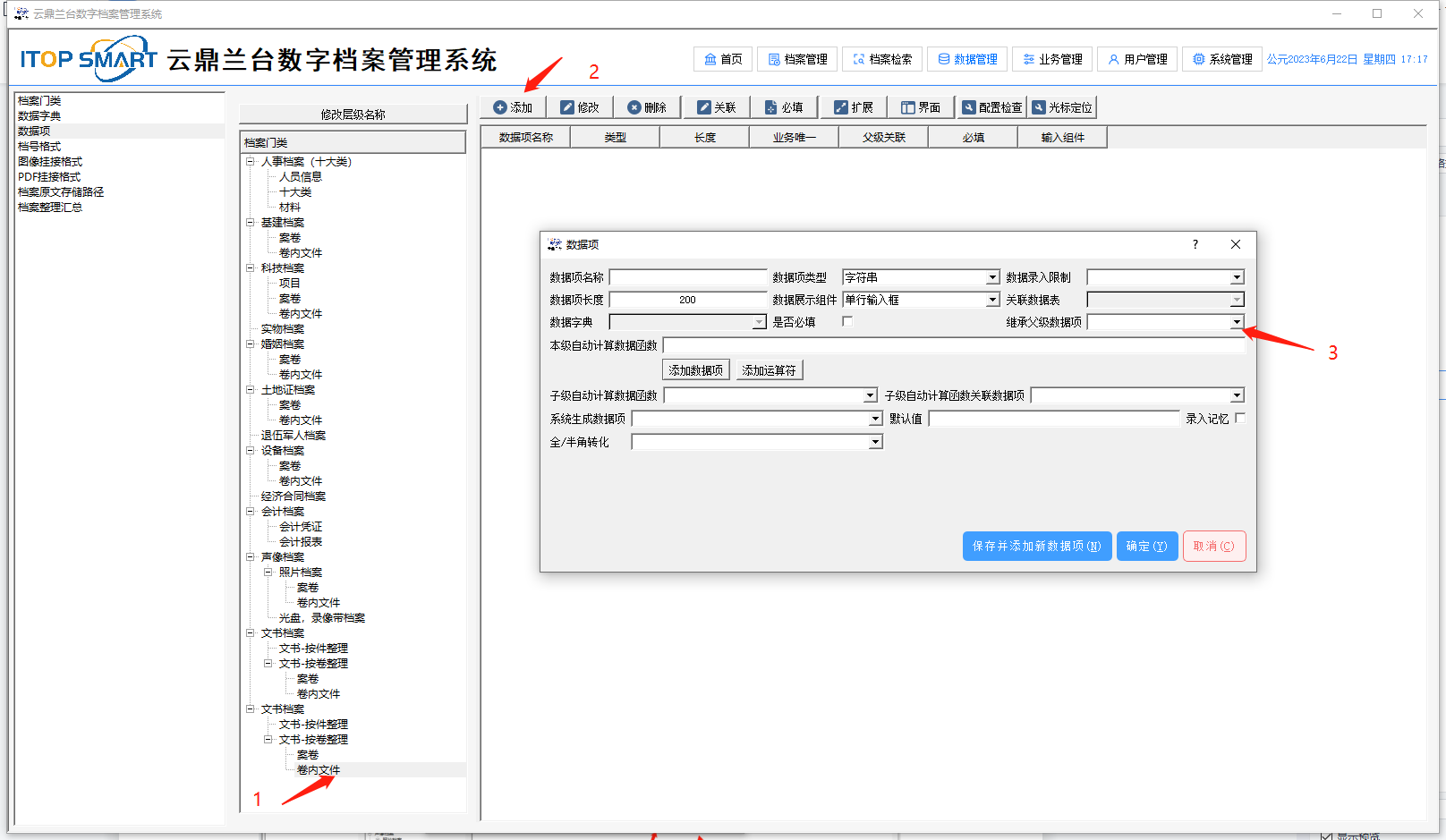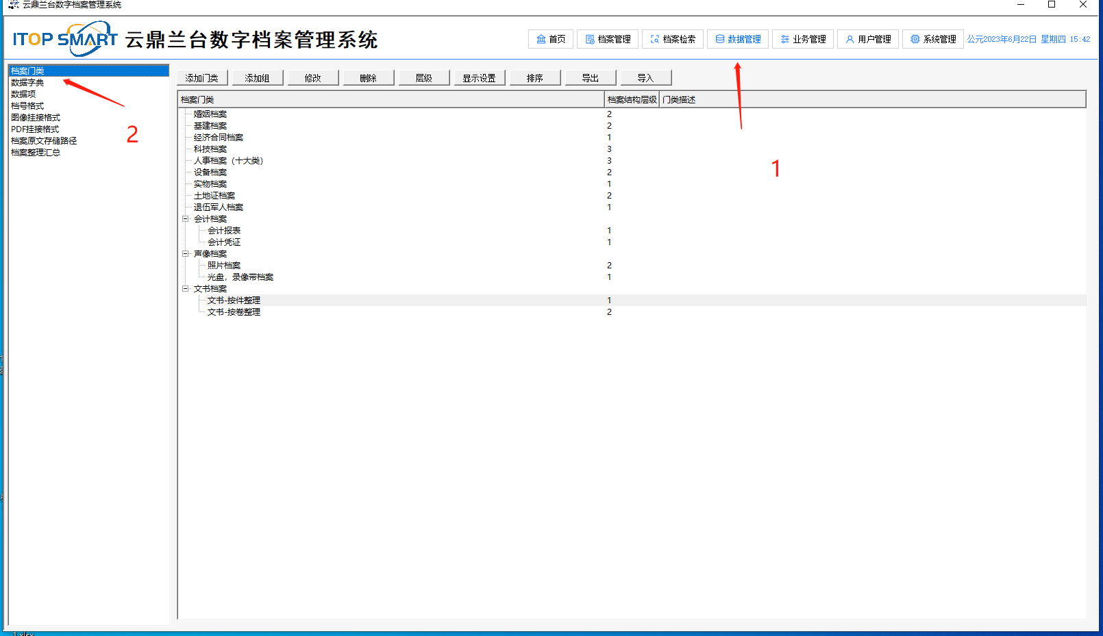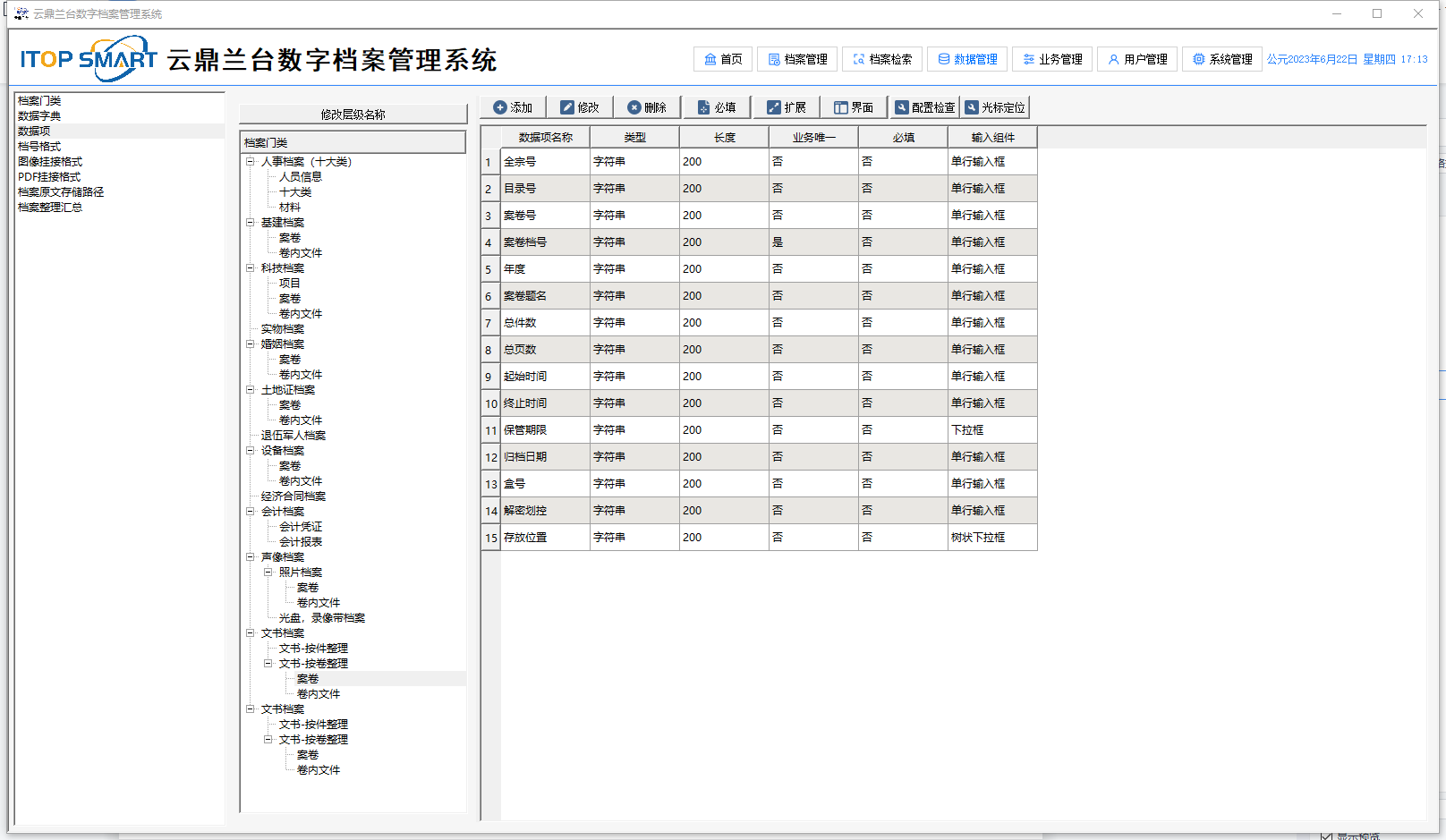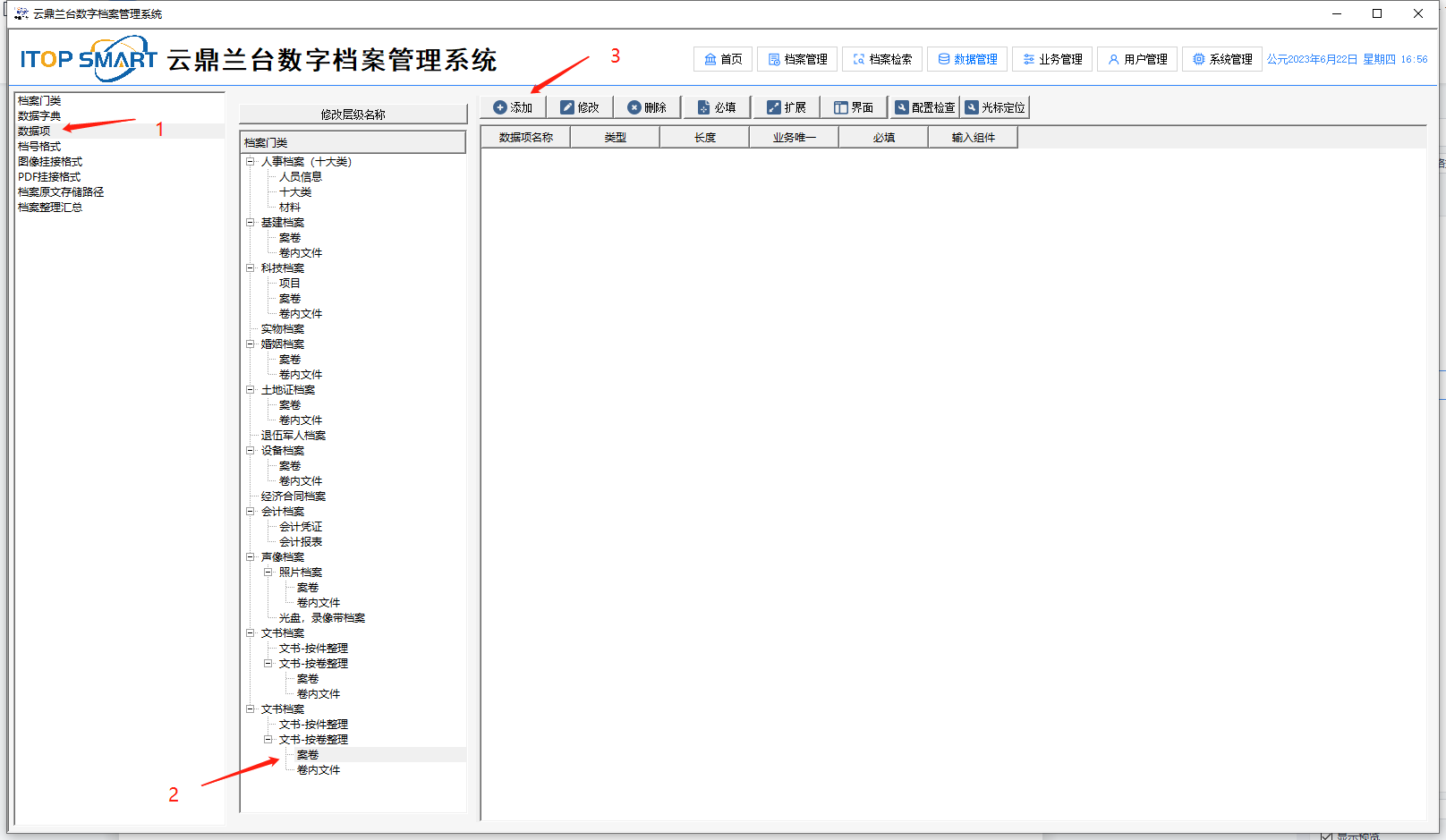 四,創(chuàng)建檔案門類并配置數(shù)據(jù)項